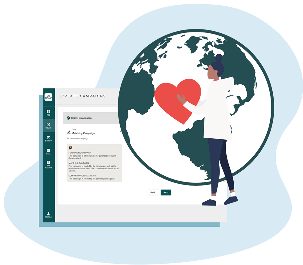 Technology to streamline your company’s social responsibility initiatives. Uniting companies, customers, and charities to make impacts in your communities, together.